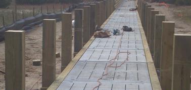Our concrete pier slats can be used in place of the traditional wood floor. They can be made in a variety of colors and finishes. Standard sizes are 8' to 10' long and 4' to 5' wide. We also offer a 1" slot as well as a 3/8" slot (handicap). No more curling footboards.